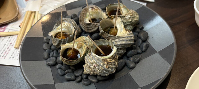 犬が一緒に泊まれるということでここにしました。夜のビュッフェです。写真はアワビですが、伊勢海老をたくさん食べれたのが嬉しいです。ご飯系は牛、豚、お寿司、パスタ、海鮮鍋、伊勢うどん、サラダなどありました。デザートもカップケーキ、プリン、ヤクルト、ヨーグルトなどがありました。種類豊富で満足です。接客はほとんど外国人の方なのにとても良かったです。