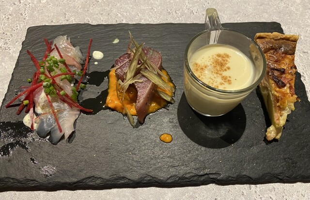 ピアットウニココース(➕500円で国産牛)をいただきました。味は全てが美味しく、目でも楽しめて大変満足しました。何回かお弁当もいただいた事がありますが、さつまいものスープはいつ飲んでも美味しいです。
