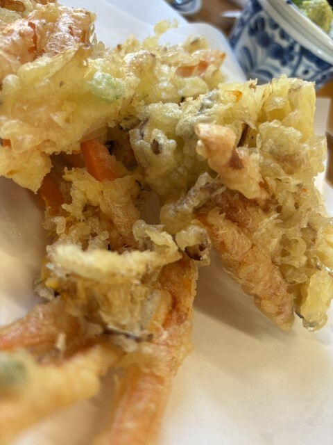 かき揚げ、天ぷら、ともにハーフ!4人で行きましたが…やっとのことで完食!いや〜美味しかった!