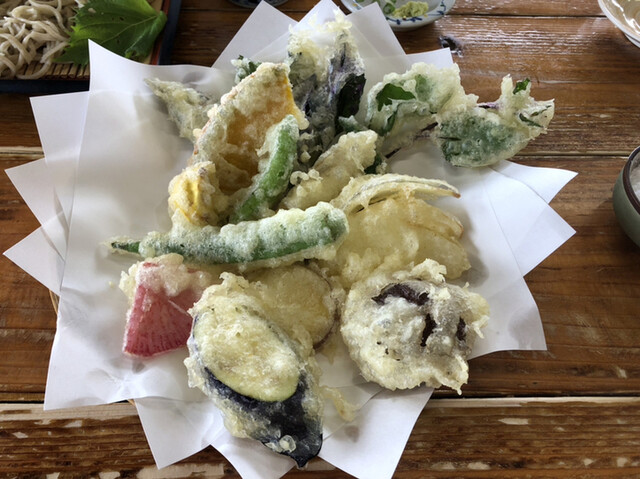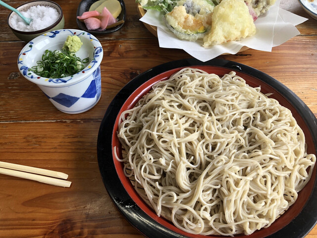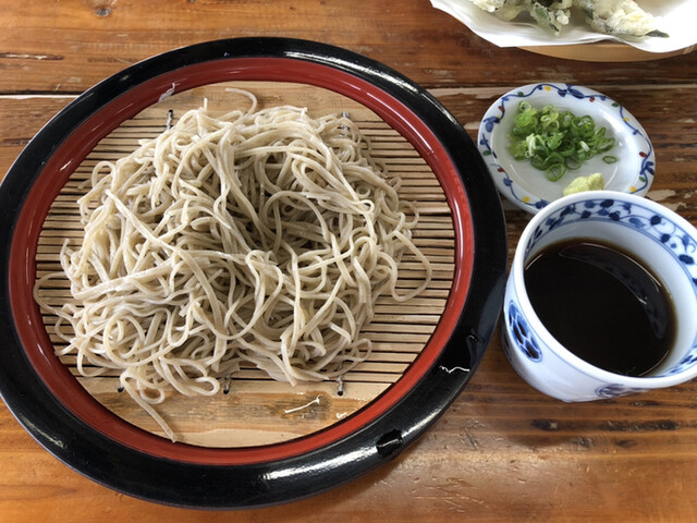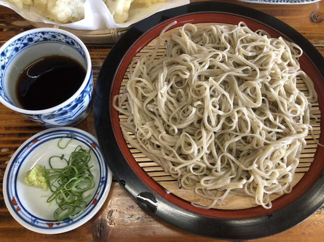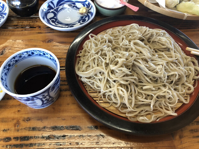 ざる蕎麦大盛りと天ぷらハーフ!今日はなんと5番目に着いて、ノートに名前を書いて順番待ちしてましたが…何故か後から来た人が先に席につかれ…気づいたら私達夫婦の名前が消されてて…店員さんに伝えてやっと席につけました。10番目位だったかな…ちょっと残念な気持ちになってしまいました。
