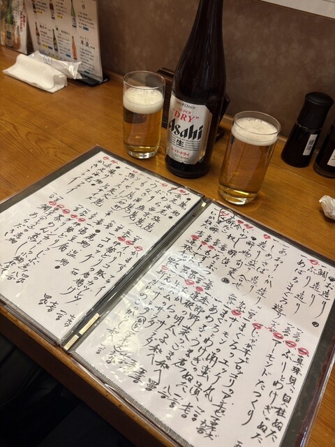 取り急ぎ瓶ビールを注文し、ごはんのファーストオーダーは紙に記入して待つことに。