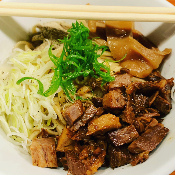 ラーメン好きの人に連れられて訪問。油そばというかいわゆるまぜそばに近い感覚の一品だと思う。着丼と同時に完成していると思うほぼ完璧に近い一品。しっかりした味に豊富な具材が絡む。その前でも最高に美味しいが、生卵をつけて食べるとグッド。また食べたいなあ