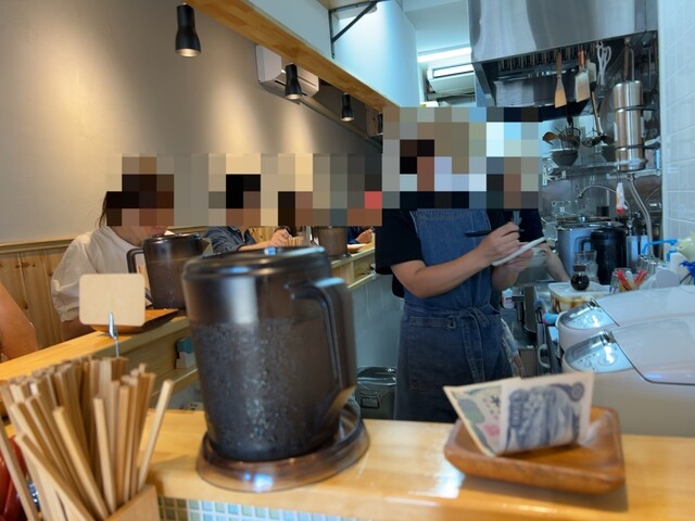 カウンター7席のところ、先客の方は3名、後客の方は2名でした。