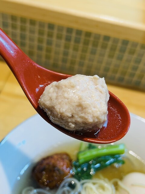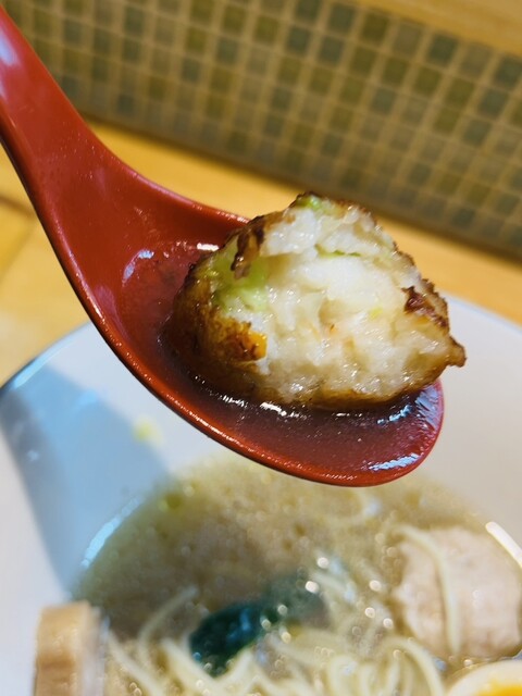 オーダーがあってから揚げ始められる”真薯”に”鶏捏” も、優しい味付けで此方のスープに良く合いますね。
