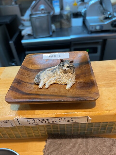 なお、着丼の際、店主の方から”玉葱胡椒”ペーストの説明をされようとしたら… 前回同様、小生が持ってきてカウンター席に置いた”三毛猫”のエコバッグに気が付かれたようで、軽〜く双方の”にゃんこ”話をさせていただきました♪