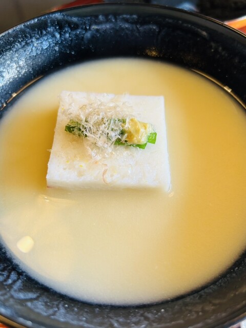 冬至豆冨は南瓜の豆冨に枸杞の実、鮟肝の松風焼きも良いですね〜