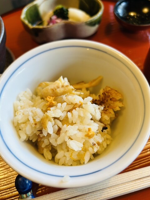 □お食事 のど黒と雲丹の土鍋ご飯、留椀、香の物