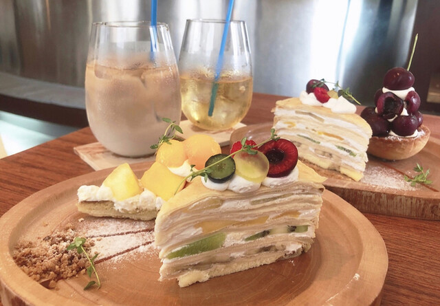 ミルクレープ、パインとマンゴーのタルト、アメリカンチェリーのタルト