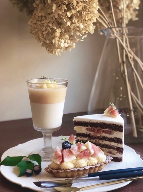 いちじくのショートケーキ、いちじくのバルケット、桃のブランマンジェ