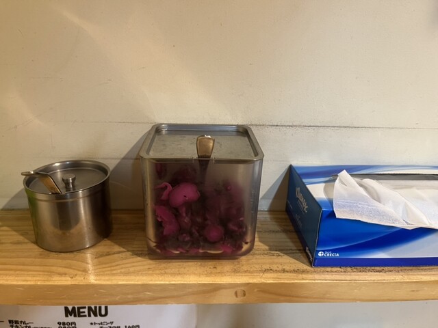 付け合わせのポテサラとキャベツも美味かったがしば漬けの隣にあった玉ねぎのピクルス?が食べやすくて美味かった