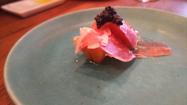 -冷前菜 かための柿に生ハムとキャビアがオンです!
