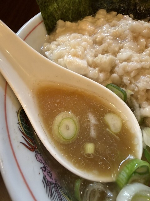 そのせいか無料トッピングの身入り(上質脂身)と玉ねぎの量を計らいで多くしてもらったのか、いつもの倍近くに感じたいつもよりねぎも多くて、時々辛味のある刻みタマネギに当たり胃に効いたこの玉ねぎの量だとチャーシュー足しても良かったけど(チャーシュー前回よりも抜群に美味しかった)脂と美味しくいただけました♾️