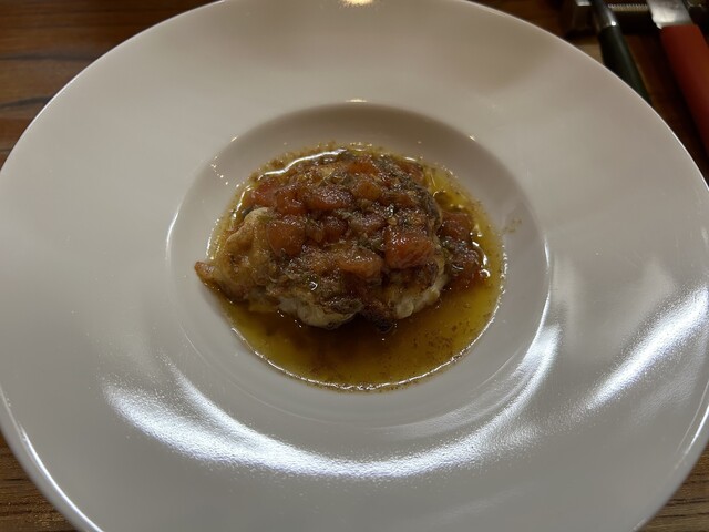 初めての訪問。料理に向き合えるようにという意図で、足が組めない椅子の高さとのこと。確かに組めなかった。カウンター席のみ、照明の具合が程よく、料理に向き合うには最適。