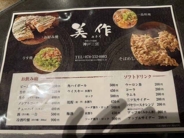 美作 神戸北野店三宮(神戸市営)、神戸三宮(阪急)、三ノ宮(JR)/お好み焼き、鉄板焼き