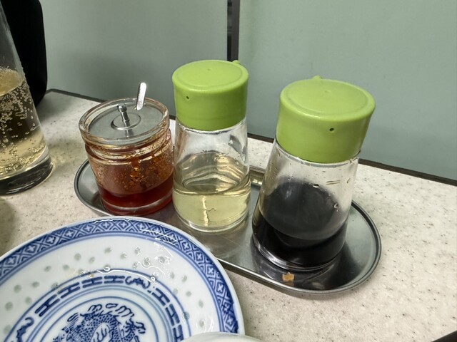 お粥が初めに出てきてびっくり。体を温めてからご飯を食べて欲しいという思いが込められています。そのままの味でも美味しいし、醤油、豆板醤もかけても美味しい。ザーサイとも合いました。