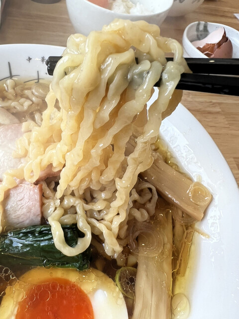 表面の油も少し多めで、もう少しだけ少ない方が好みです。しかし、スープ自体は、鶏や豚、和食材の出汁が複雑に混ざり合って、最後の方は和食の印象が強いです。かえしは、淡麗系ではありますが、かどが丸い印象でとても好みです。