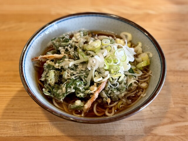 天ぷらそば(春菊とにんじんのかき揚げ)610円