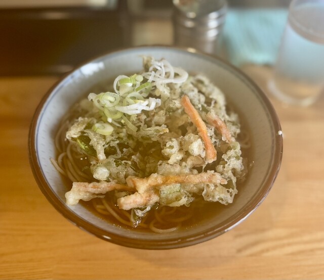 桜エビと玉ねぎのかき揚げそば(温泉たまご)