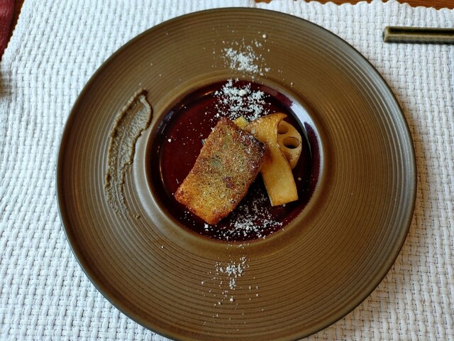 お肉のメイン 菰錦豚のクリスピーチリソース