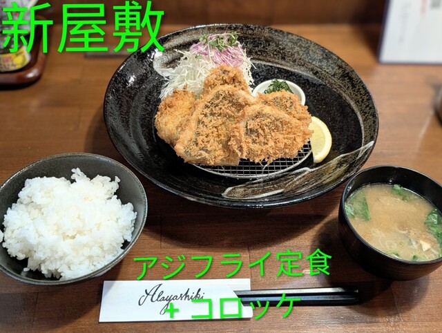 【あいもり】はアジフライ2切れ&カキフライ3個です ご飯(大中小から選べる)と味噌汁付
