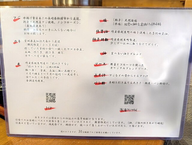 2回目の訪問 アジフライは勿論食べたいけれど、このお店のカキフライって果たしてどんなものになるのか⋯興味が湧き 11:30 の回を予約