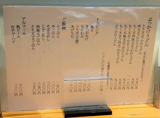一番端に謳われているのはとり天ぶっかけ、これを頼む人が多いようなので自分も右に倣え、ちくわ天をプラス