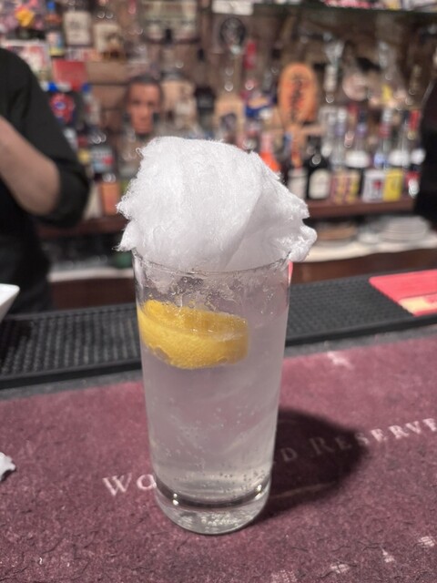 以前綿菓子を溶かしたカクテルを飲んだことがあるので、綺麗色のカクテルに綿菓子を入れてもらいました。
