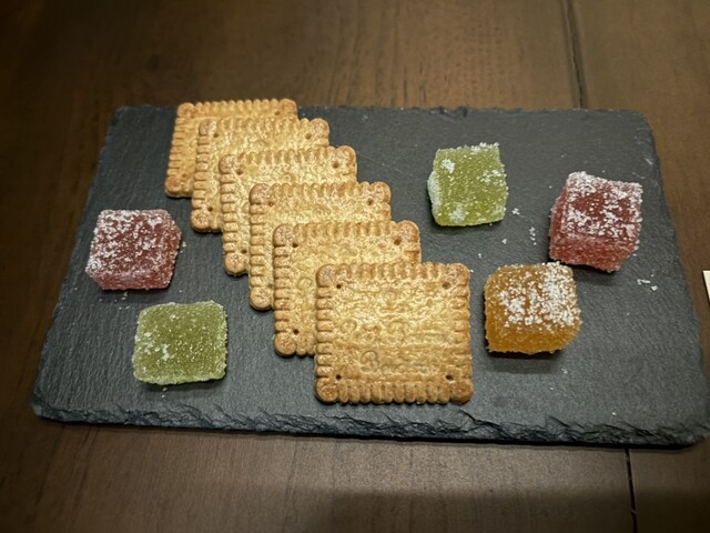 ボルディエバターサブレとパートドフリュイのプレートをいただきます。