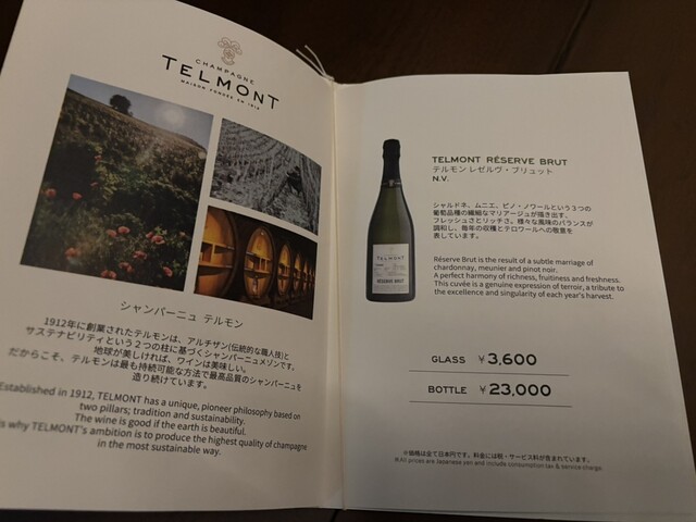 今日はおひとり様で、まずはシャンパンをいただきます。
