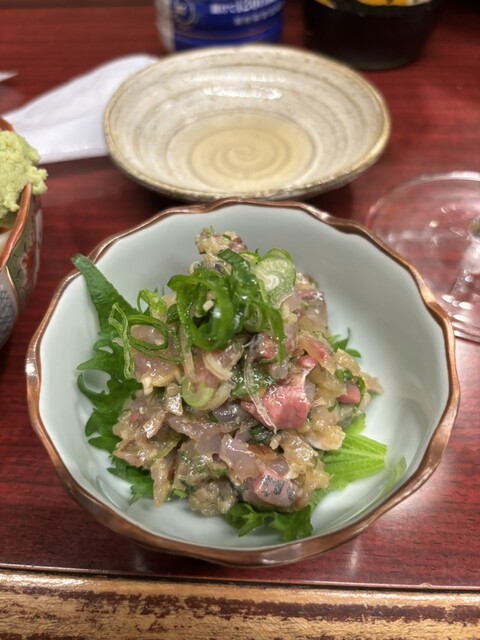 鯵のなめろう、生姜が塊で入ってる∑(゚Д゚)