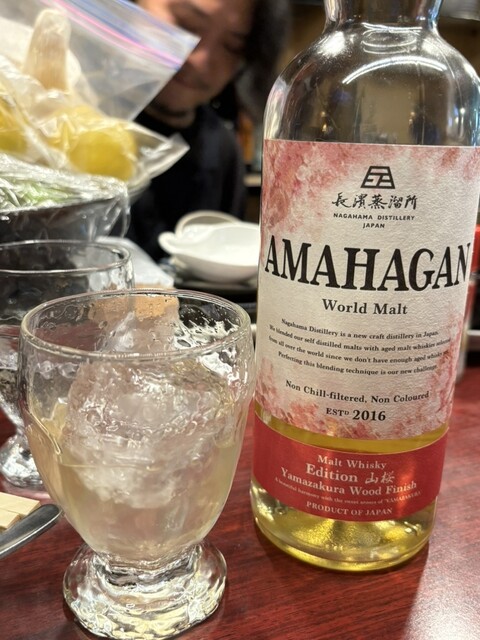 長濱蒸溜所のアマハガンは、最近頑張ってるもののまだまだ知名度は低い。そんな中メニューに載ってるVINOLOCOさんの研究心に拍手‼️