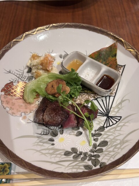 肉前菜3種は肉刺し、ローストビーフ、ユッケだと思う。
