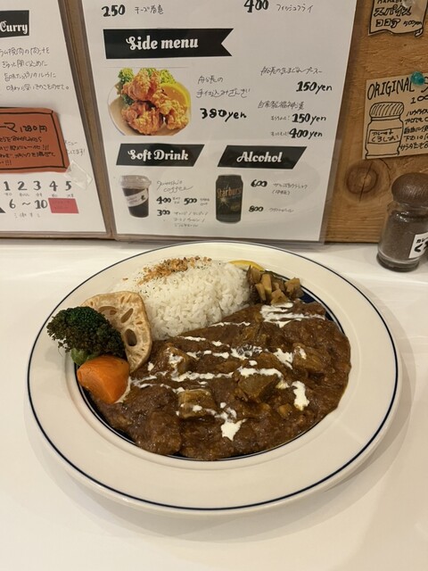 漬け込まれたジャークチキンはしっかりした味で濃厚なルウによく合います。