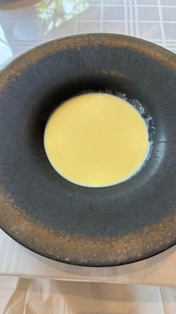 特に美味しかったのは、コーンの冷製スープとお魚に添えられていたホタテのお料理です。コーンの甘味が半端なく、特別感満載でした。ホタテのお料理は初めていただきました。周りにカリカリしたものをつけてソテーしたとか。ホタテの旨みをギュッと詰めてあるお料理で、お料理名が分からず聞き返せば良かったとやや後悔。