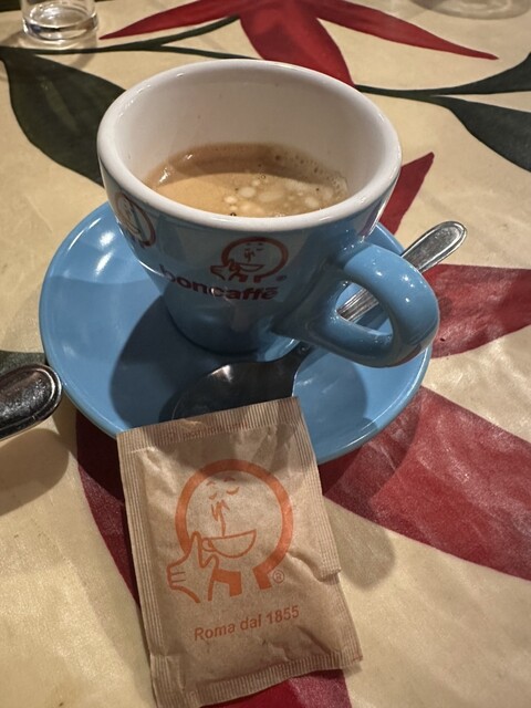 今回はソーセージ、ピザ3枚、サラミ、ビールにワイン、デザート、エスプレッソ、3名で腹一杯です!