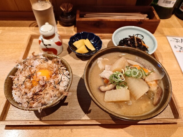 まずは、ぶたじるから頂戴して、玉子かけごはんも続けて頂戴していく。