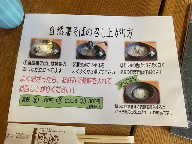 【自然薯そば(温) 税込:1380円+麦飯(中)200円】
