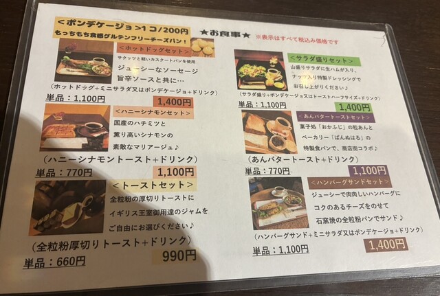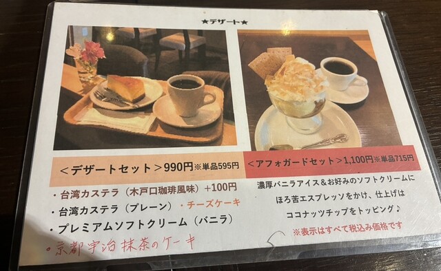 コーヒー単体だけでなく、ケーキセットや軽食セットも可能。