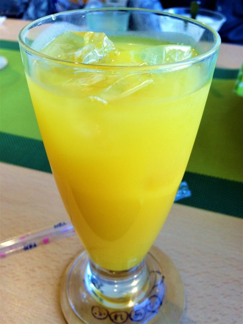 ドリンクはコーヒー・紅茶・オレンジジュース・アップルジュース・ミルク・ゆず茶から選べオレンジに。