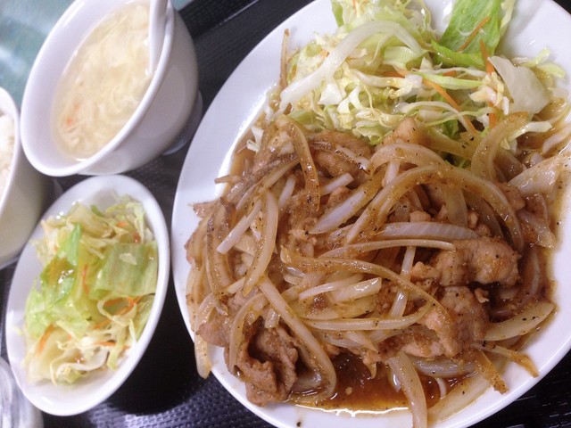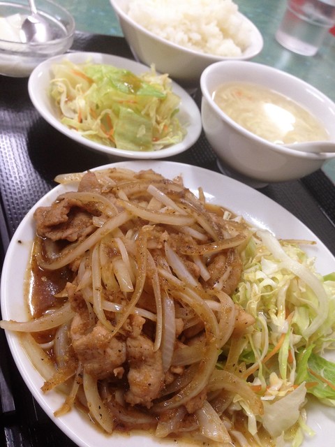 板橋町中華にしてはライスは少な目、玉子スープも杏仁豆腐も美味しくまた食べたい豚肉生姜焼きに出会えました。