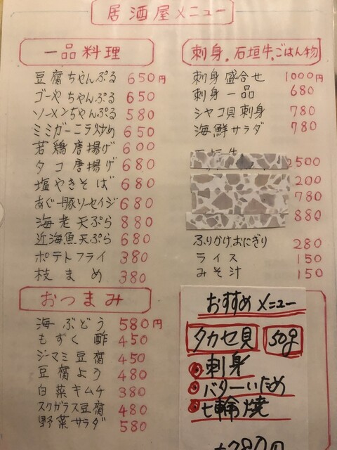 年末年始の石垣島ツアー3日目、やっと潜りに行けたこの日の夕食は宿の下にある居酒屋さんにて。