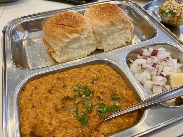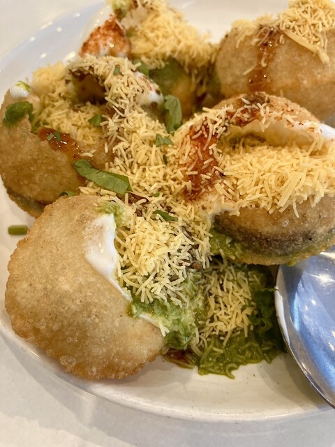 ミタイワラには珍しいインドのスイーツがたくさん売っています。2階にはイートインスペースがあり、軽食も頂けます。今日はお目当てのダヒプリと、それだけでは物足りないのでパオバジもオーダー。ダヒプリはヨーグルトソースたっぷりで本当に幸せになります。ムンバイパンも本当に美味しい。