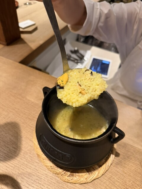 ディナーでemanを訪問。魚介の旨味が溶け込んだスープから始まり、タパス3種、ウニをのせた一皿や魚料理、イベリコ豚のメインまで、どの料理も味のバランスが素晴らしく「美味しすぎた!」の一言でした。特に東海老のパエリアは香ばしいおこげと濃厚な出汁が効いていて、思わずおかわりしたくなるほど。コース構成もよく考えられていて、最後まで飽きずに楽しめました。カウンター越しにライブ感ある調理風景を眺められるのも魅力で、またぜひ再訪したいお気に入りの一軒です。