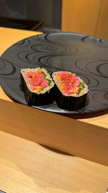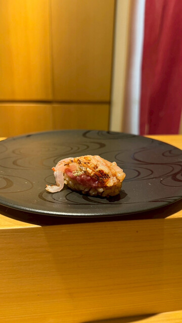 鮨 長島を訪問。脂の乗った光り物や燻香をまとわせたマグロ、ふっくら香ばしい焼き穴子など、それぞれに一工夫が感じられます。シャリはやや強めに仕上げた赤酢で、キレのある味わいがネタをしっかり引き立ててくれました。締めの巻物や小丼まで抜かりなく、カウンター越しの程よい距離感の接客も心地よいです。特別な日にも、ゆっくりお寿司を楽しみたい日にもまた伺いたいお店です。