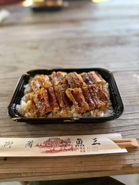 今日は貸切でテイクアウトのみでした。鰻食べたくて来たので、鰻気分から抜けきれず。仕方なく弁当を、景色の良い公園で食べることに。1人1匹半のウナギの弁当2500円でお得感ありました。うなぎもご飯もタレの...