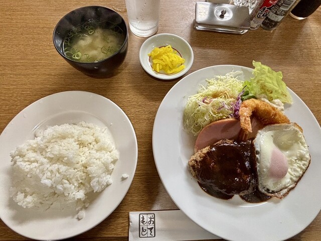 細い道を入り、三台駐車がお隣にあります。本日の日替わりランチが、白身フライで、900円。せっかくきたので、ハンバーグのAセットとエビフライのあるCセットを頼みました。