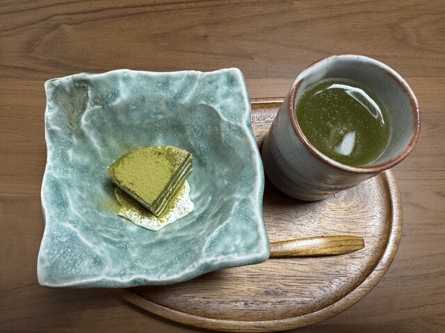 デザートはカボチャのお餅で、初めて食べましたが栗とカボチャの甘みが程よく抹茶と合います