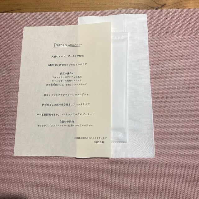 同僚との月イチランチは、伊賀にある私がとっても大好きなイタリアンレストラン Ris.へ。伊賀の食材を中心に組まれるコース料理はとてもきめ細やかでやさしい。町家ならではの穏やかな雰囲気も合わさり、心身に安らぎをもたらしてくれる。席数が少なめ設定なのも推しポイント。