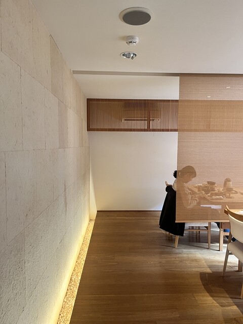 座敷のテーブル席(美しい中庭が見えるジャパニーズモダンのお席)に通してくれます。個室もあるよう。各テーブルが簾で空間を区切られていて自分たちの世界に没頭できる。