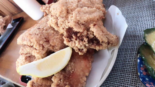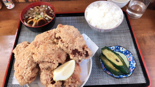 店内は男性ばかり、ほとんどの人が唐揚げ定食を頼んでました。大きい唐揚げが五つ。